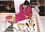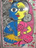Puja Jha w/o Anal Kumar Jha is from village Satlakha Madhubani District Bihar,India. Puja Learnt this world famous Art from her mother and her Elder Sisters.An Architect by Proffession and Mithila Artist by Tradition.Puja has been practicing this art form since last twenty years and has been exhibiting her art works since last fifteen years.She has had several shows all over the country at lalit kala Academy,New-Delhi,India Habitat Centre,All India Arts and Crafts Society,New-Delhi,Gallery Time and Space ,Banglore,Ahemedabad,Vadodara,Goa and also in Mauritius.She has been Part of Several workshops organized at Indira Gandhi National Centre for Arts,New-Delhi.Puja has her own unique style of painting with very strong line work and very different technique of use of colors.Some of her famous series are on Buddha, Banglore city,Ardhnareshwara and Radha-Krishna.Puja presently lives and works from Banglore,India