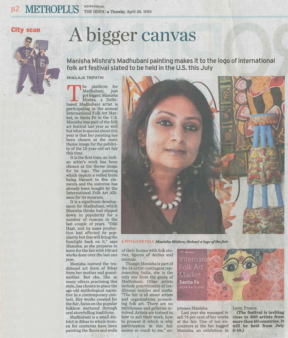 Manisha jha's painting Begining-The Bride , was Logo of Santafe Folk Art Market-2016, It was for the first time that That Indian Art was Logo of folk art market.