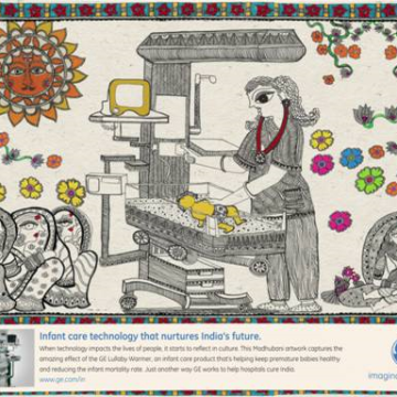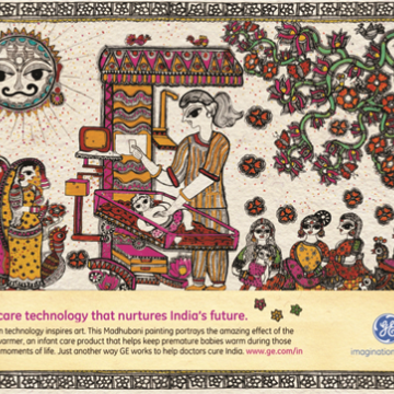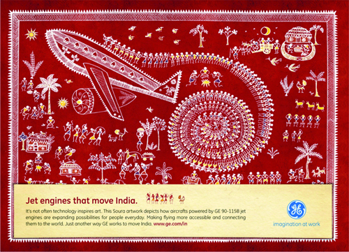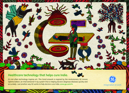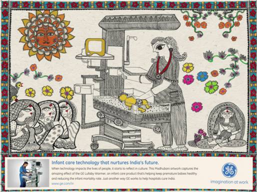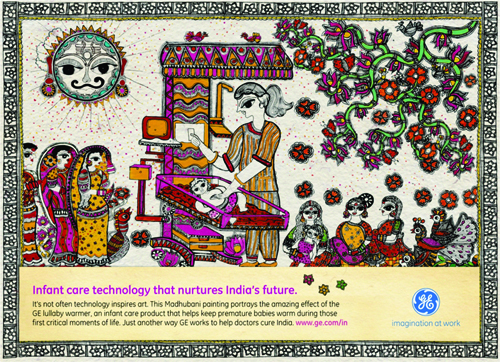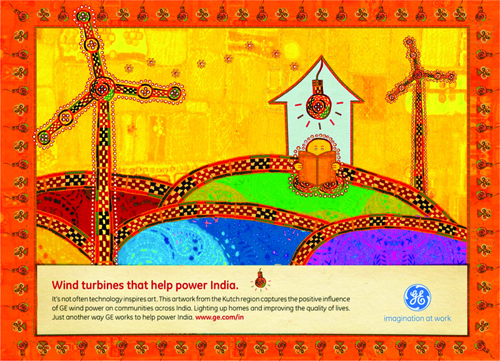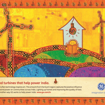 Challenge was to develop Art Works for products like Energy, Infant Care Technology, Ready Finance, Jet Engines, Healthcare Technology & Wind Turbines in typical folk style 2011-12.