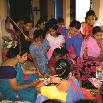 Since 2005 we have been taking continuous workshops with women artists in different villages of Madhubani Distt. We have been training, and helping them to stand on their own feet by sharing knowledge about good work, how to apply for exhibitions in different parts of the country, training how to sell their works. Since 2005 we have directly and indirectly hlep more than 500 women artists. We have created a bridge between rural women artists and the urban market.