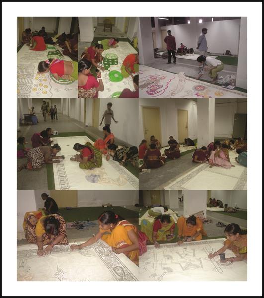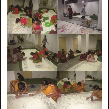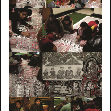Documentation of Madhushravani Festival Celebrated by Women of Mithilanchal during monsoon season. Under Narivad Department, Kala Kosh, Indira Gandhi National Centre of Art, Man Singh Road, New Delhi. Workshop was attended by 40 master craft women from villages of Madhubani District. The important feature of this workshop was that first time in the history of Mithila Paintings woman from all caste i.e. Brahmin, Kayastha and Dusadh worked together on one single painting. This workshop is also landmark in making artists work with new material i.e. Canvas and Acrylic colors. It is an amazing documentation of Vrat, Kala aur Katha.