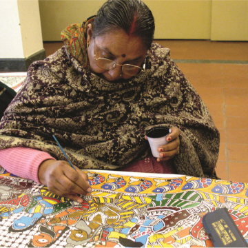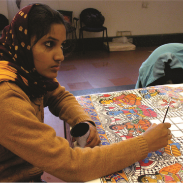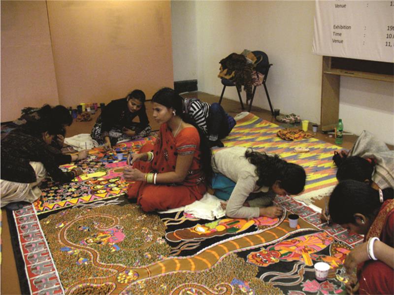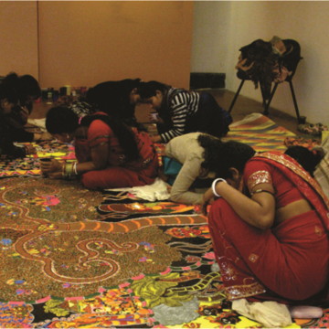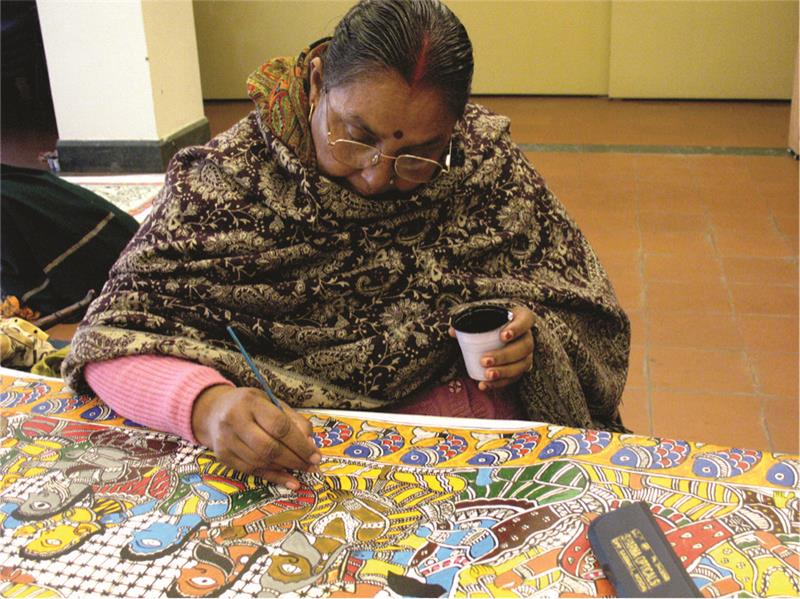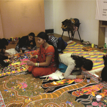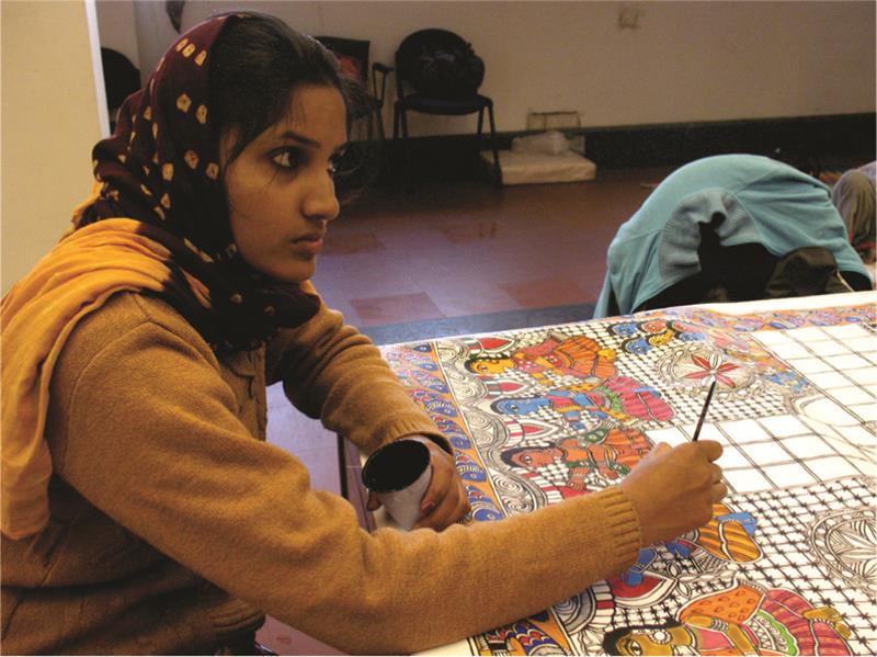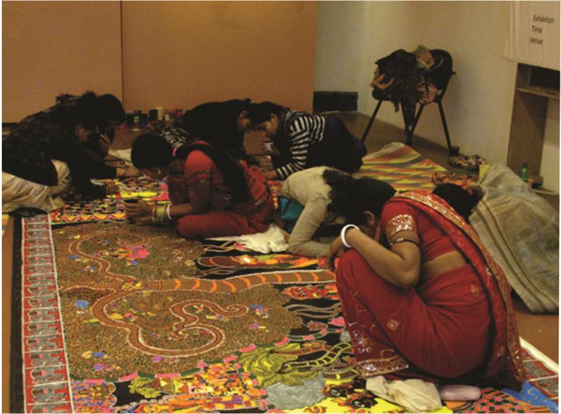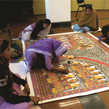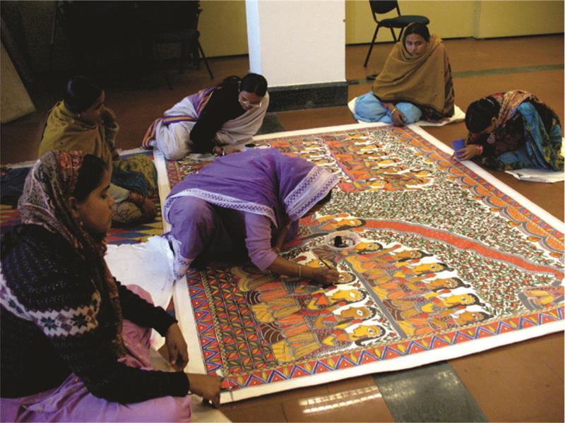 from different villages of madhubani district participated in the workshop. some of the artists were Baua Devi and all her daughters and grand daughters,Bandana jha,Shanti Devi and her daughter, Urmila Devi and her Daughters,Chandrakala Devi, Ruby,Sapna,Vandana Devi,Mamta Jha,Reena Jha,usha,Sumintra Devi and some more..